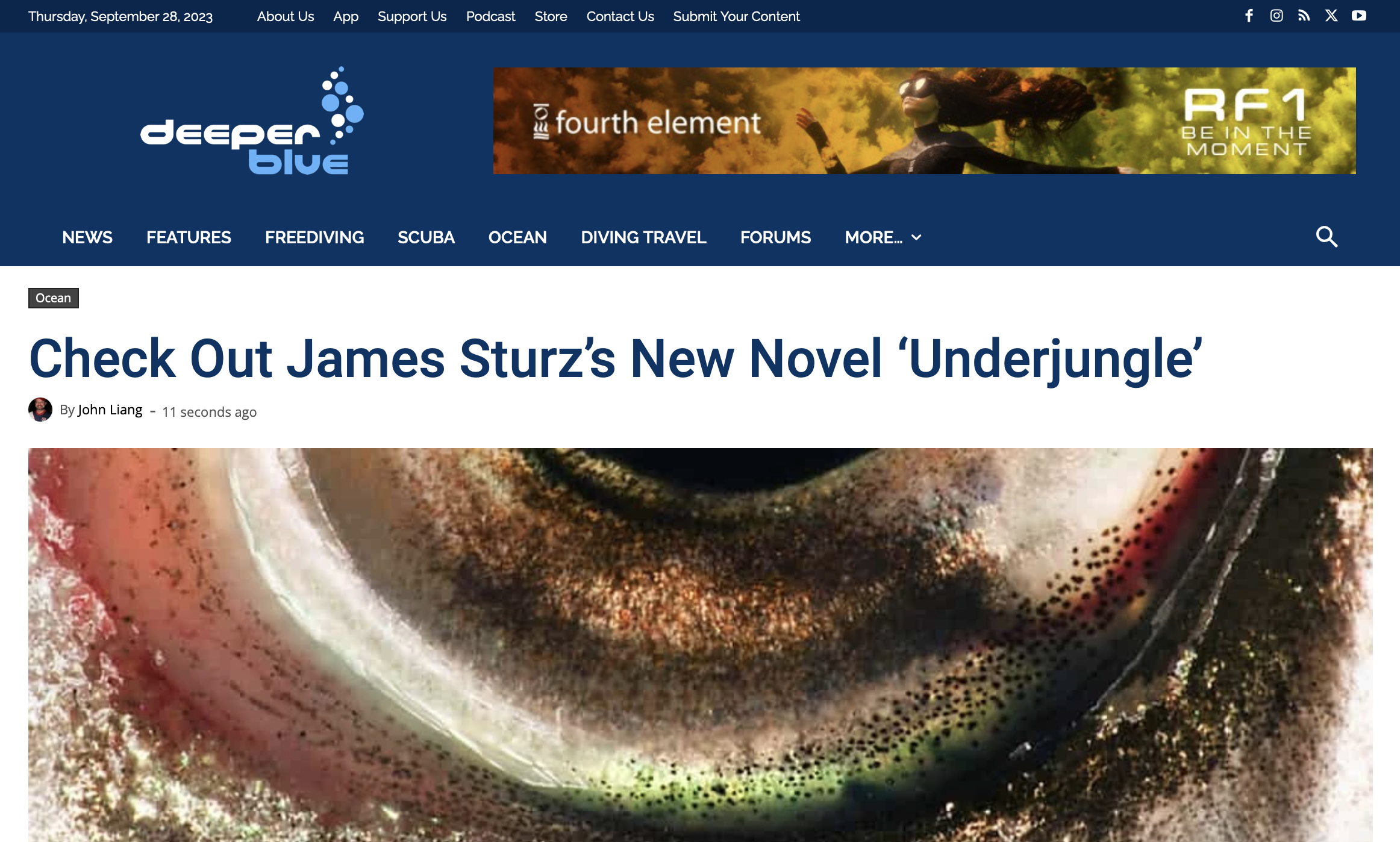 “Underjungle,” a new novel by author and journalist James Sturz about love, loss, family, and war set entirely underwater, was recently released.